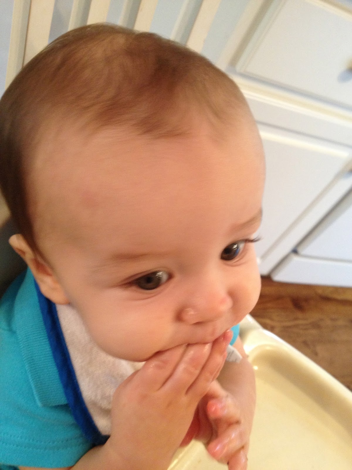 In the process of this, Bo took a bit of a tumble and whacked his head on the stool I was using to stand on. He didn't really cry but I noticed about 15 minutes later a small goose egg had appeared on his forehead. I am sure it will be his first of many. Mama of the year over here. Can you see the red spot on the left of his forehead?